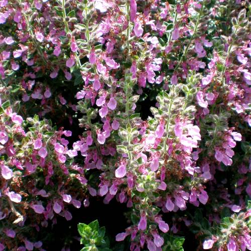 La Germandrée luisante (Teucrium lucidrys) est une vivace florifère au port compact, idéale pour les bordures, les jardins de rocailles, les massifs de vivaces. Son feuillage persistant est finement denté, les feuilles sont luisantes et épaisses. La floraison rose à mauve organisée en épis, intervient en été à partir du mois de juin et se prolonge jusqu’à octobre.