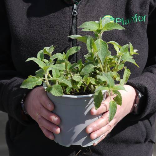 Le feuillage de la Sauge ananas est caractéristique, il dégage au froissement un parfum intense d’ananas.